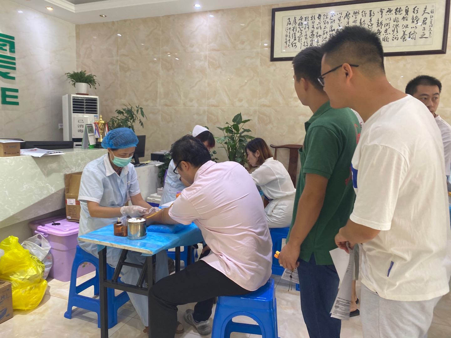 早上七點(diǎn)半,大家就已經(jīng)排好長(zhǎng)長(zhǎng)的隊(duì)伍等待體檢;本次體檢項(xiàng)目設(shè)有內(nèi)外科常規(guī)檢查、血常規(guī)、彩超、胸透、血壓、尿常規(guī)、心電圖、B超等多項(xiàng)體檢項(xiàng)目。