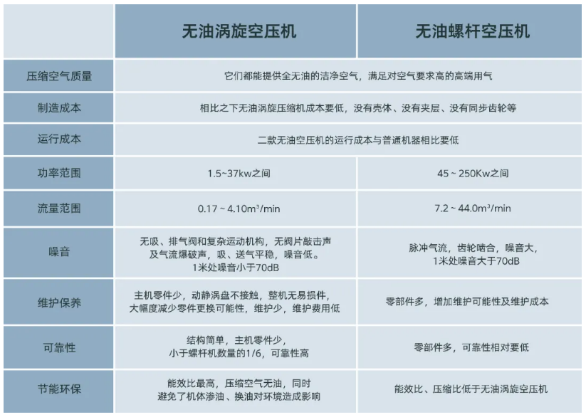 很多用戶想知道無(wú)油螺桿空壓機(jī)與無(wú)油渦旋空壓機(jī)的區(qū)分,今天他們來(lái)了。兩者之間有很多共同點(diǎn),又有許多不同之處,下面我們通過(guò)工作原理、詳細(xì)對(duì)比數(shù)據(jù)、優(yōu)勢(shì)及應(yīng)用場(chǎng)景等幾個(gè)方面進(jìn)行對(duì)比區(qū)別。
