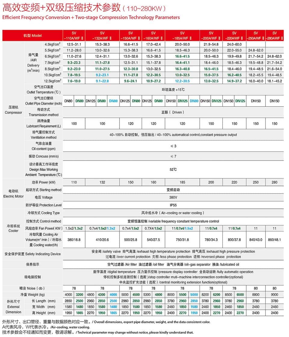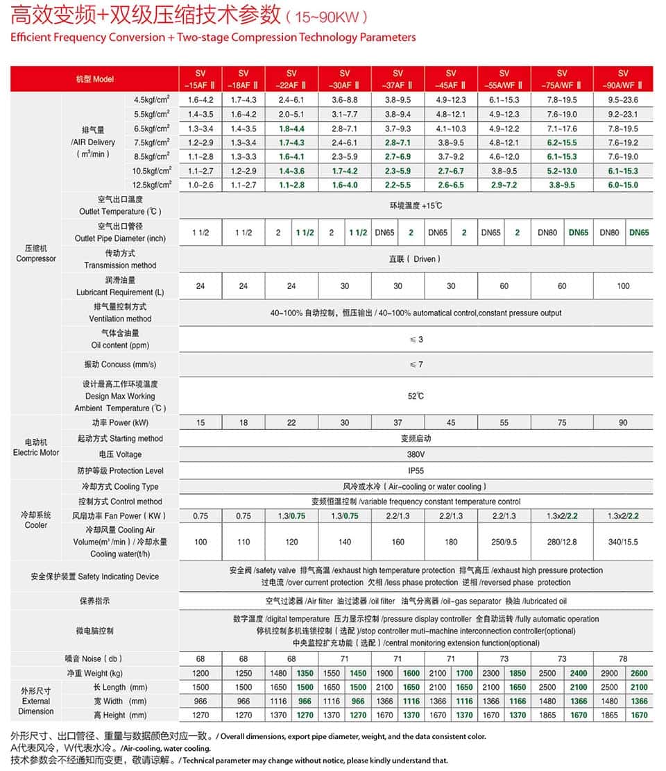 | 機(jī)型Machine Model | SVF-22A Ⅱ | SVF-30A Ⅱ | SVF-37A Ⅱ | SVF-45A Ⅱ | SVF-55A Ⅱ | SVF-75A Ⅱ | SVF-90A Ⅱ | |||