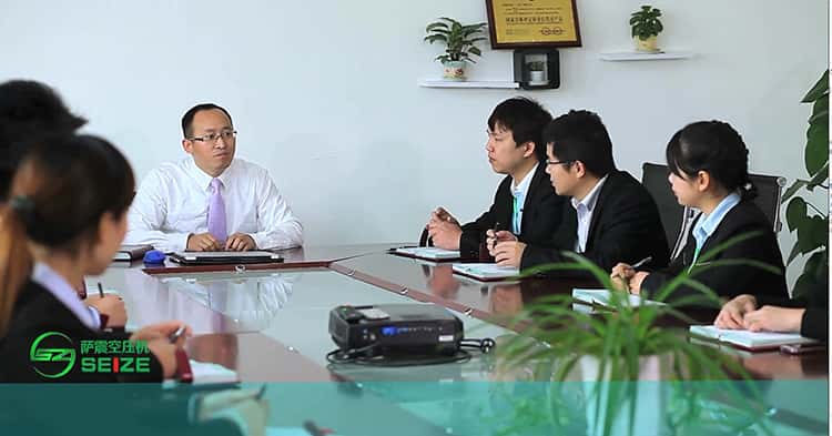 薩震壓縮機(jī)(上海)有限公司總經(jīng)理程紅星,經(jīng)常利用月會(huì)及晚上的休息時(shí)間,給薩震的業(yè)務(wù)員們做無(wú)償?shù)膶?zhuān)業(yè)知識(shí)及技能方面的培訓(xùn)。